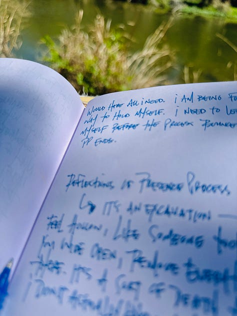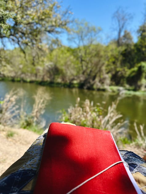 I know it seems so simple maybe silly even. But one weekend during this hellish month my dear friend came out to visit and we decided to go and sit in front of the river and read, journal, and have spontaneous conversations about Carl Jung and the Feminine and Masculine. It breathed life into me. Until we saw a snake on top of the water headed our way and then we bounced!